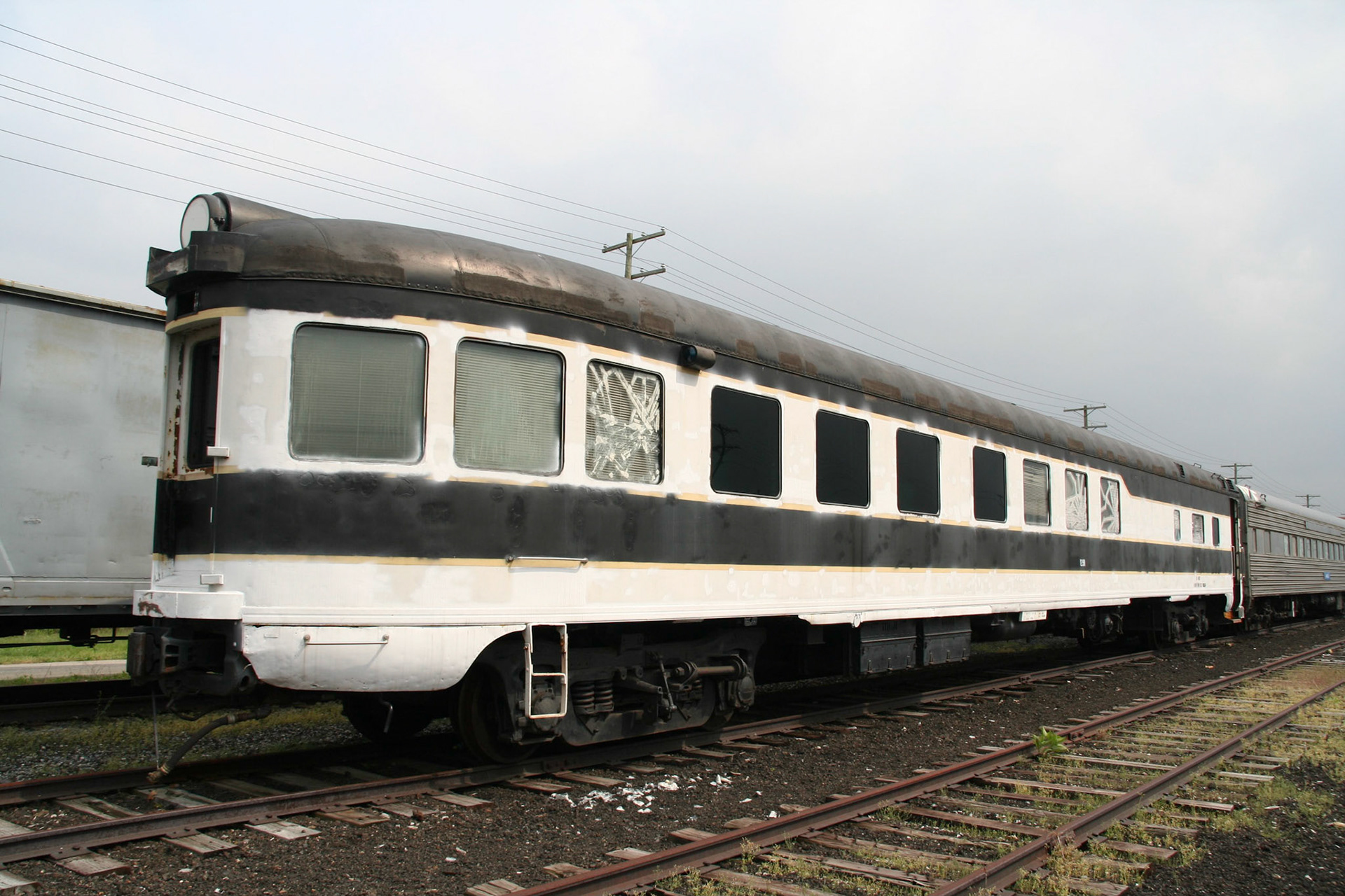 Now based at the Midwest Railway Preservation Society in Cleveland, work continues on the cars, with the immediate focus being on replacing GTTSM's electrical systems for compatibility with modern HEP power systems. The Gyralight has been restored to operating condition, and installed in its roof housing, and work continues on the electrical systems, including updating the interior lighting to LED fixtures, and updating wiring throughout the car. Work on restoring the decorative pier panels in the lounge continues, with one panel replaced entirely, and others undergoing cleaning and repair from water damage. Work on the window seals is ongoing.