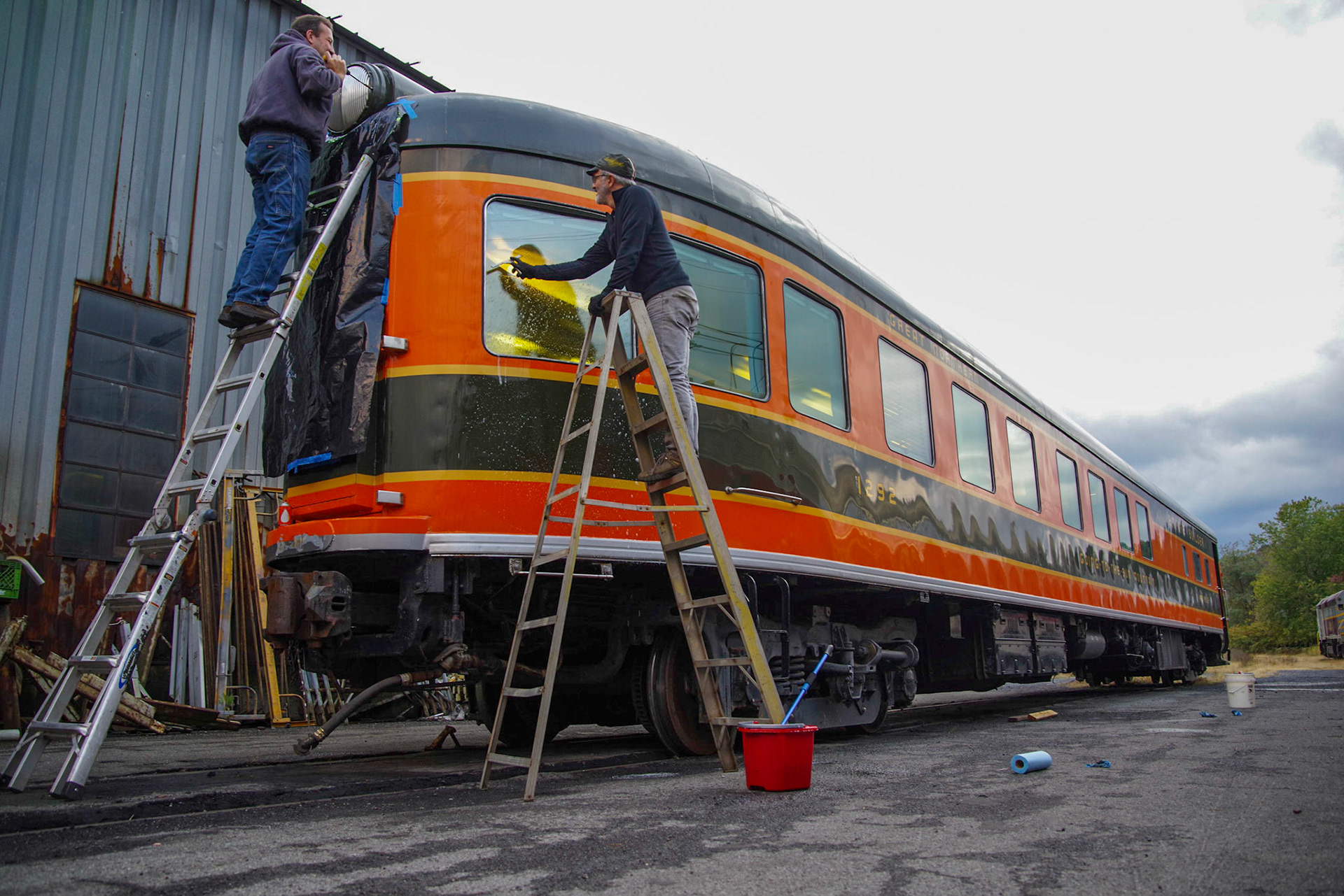 Since 2005 I have been helping with the restoration of three cars owned by Ben Ringnalda — Great Northern Mountain series observation cars 1291, St. Nicholas Mountain and 1292, Going-to-the-Sun Mountain and built for the 1950 Mid-Century Empire Builder, and GN-built caboose X-7.