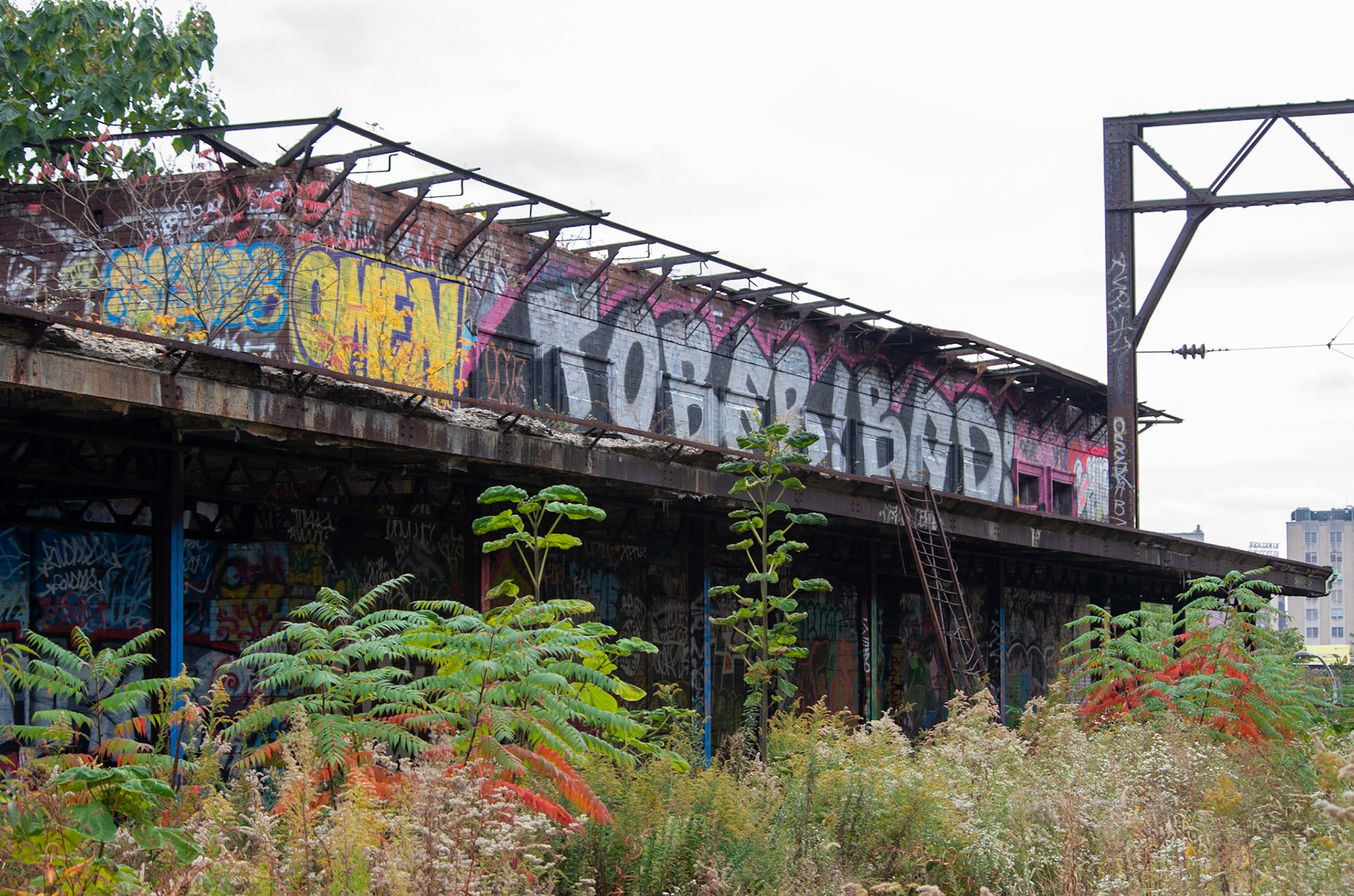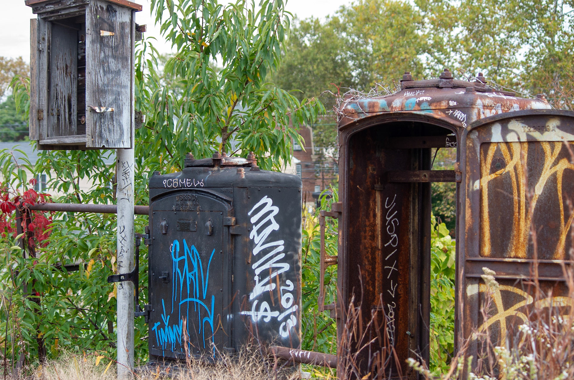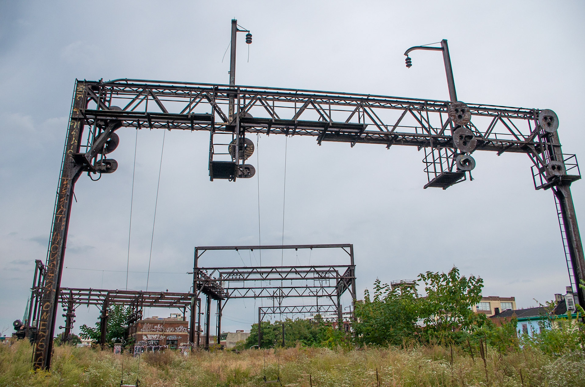 The remains of the Reading railroad's Philadelphia viaduct bypassed by a new line in 1985 left the signal and electrical transmission equipment in place, awaiting redevelopment as a linear pedestrian park in the future
